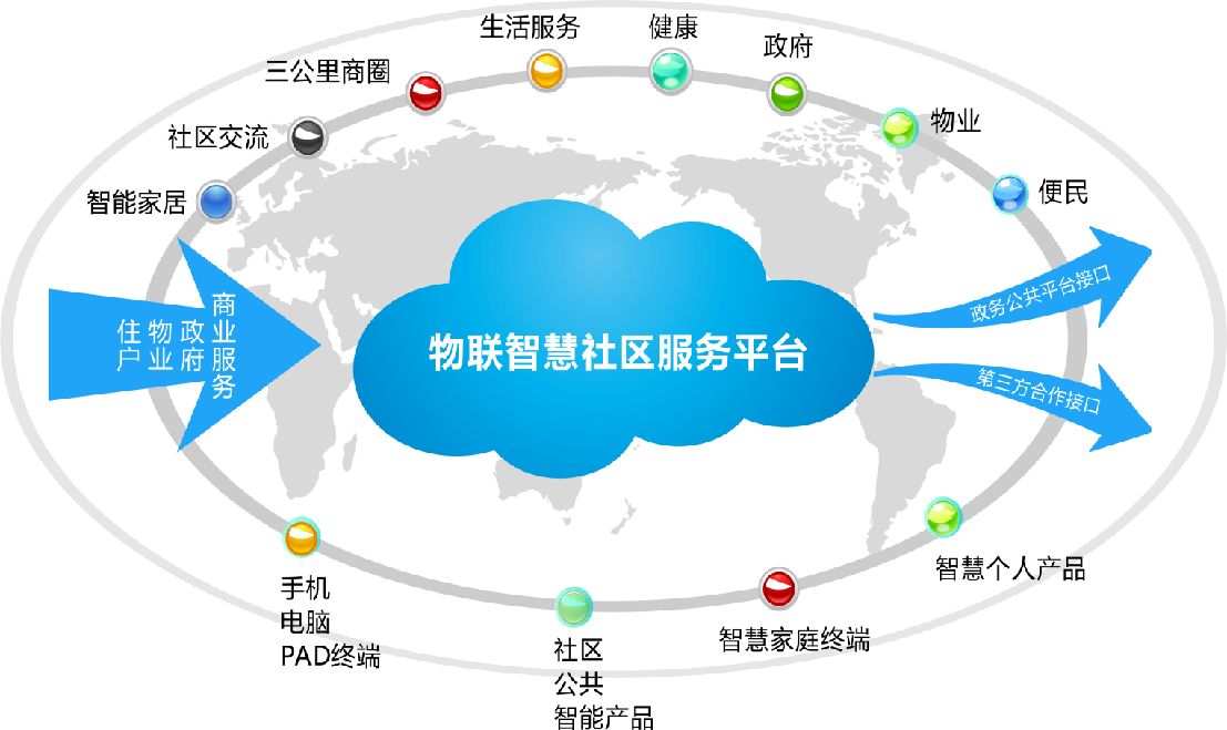 The smart community builds a unified platform, sets up a community data center, and constructs three basic networks. Through layered construction, the platform's capabiliti